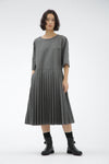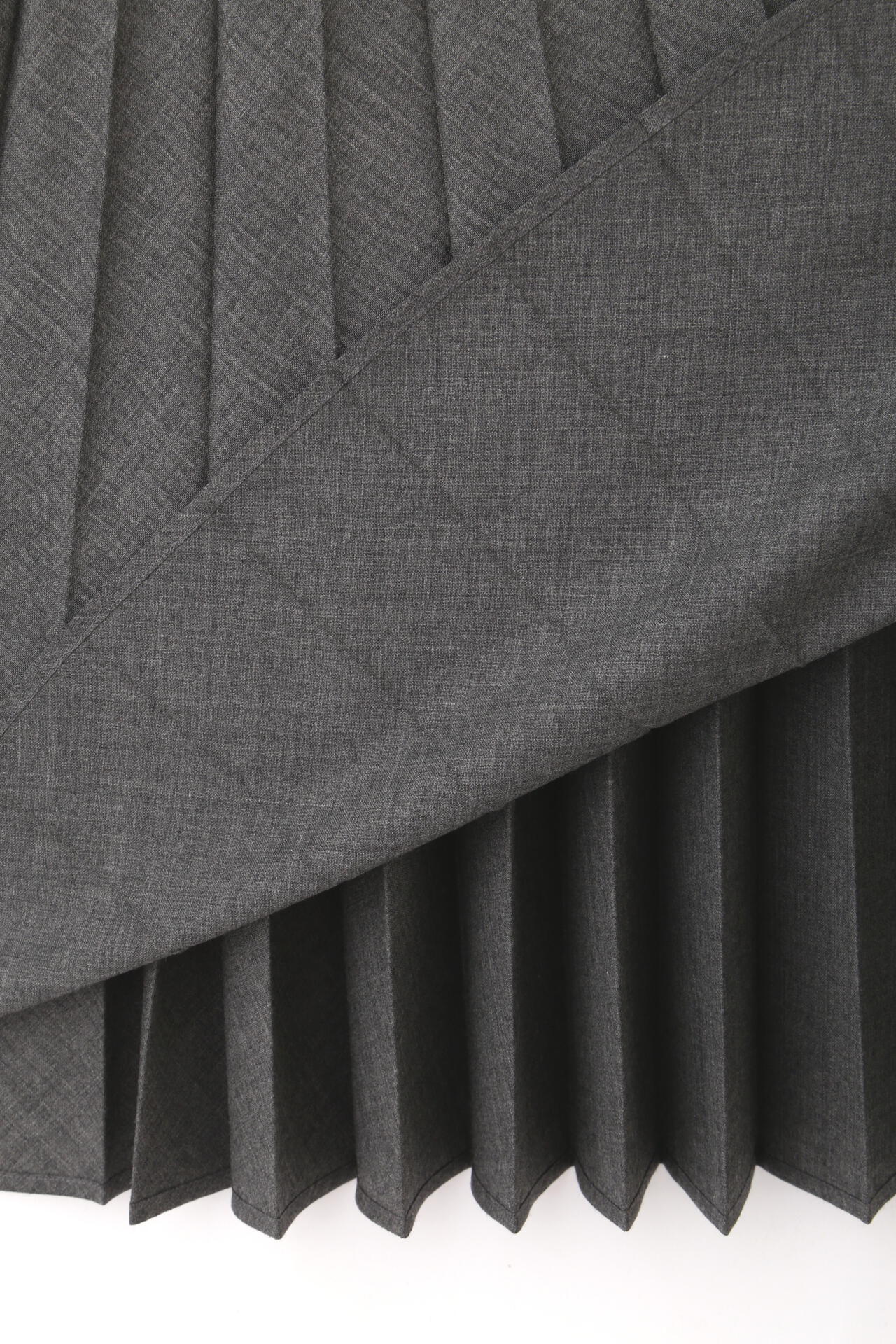 フォックスブラザーズ社製のサマーウールを使用したドレス。さらっとした手触りで軽さとドレープ性があり、繊細なメランジの美しさや少し黄味のある英国らしいグレーの色味が特徴。Tシャツライクなデザインのトップにアコーディオンプリーツのスカートを組み合わせたスタイル。