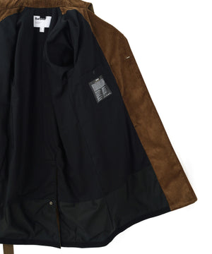 クラシックなディテールを備えたバブアーらしいデザインで、コンパクトなボタン配置の前合わせやコーデュロイ素材の襟がポイント。ロング丈のシルエットにストームカフを採用し、防寒性を高めた仕様。裏地には高密度のコットンドリルを配し、取り外し可能なレザーバックルベルトが付属。カジュアルにもドレススタイルにも馴染む一着。