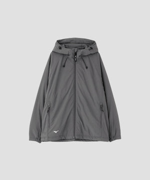 ミリタリーとスポーツの要素を掛け合わせた、バランスの良いデザインが特長。全面にソフトな風合いの中綿を入れ、裏身頃の背上部には吸湿発熱シートを縫い込み、より熱が逃げにくい機能性を備えたフーディジャケット。