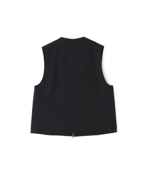 サマーウールを使用した、ドライタッチで通気性に優れたポプリン素材のジレ。吸湿性が高く、汗ばむ季節も蒸れにくく快適な着心地が特長。