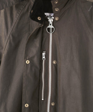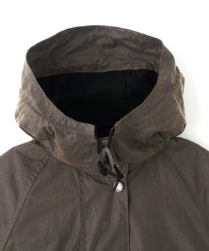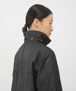 6オンスのワックスドコットンを使用したスタンドカラーパーカー。強度に優れ、なめらかな質感と控えめな光沢が特徴。無臭でベタつきも抑えられており、日常使いしやすい素材感。