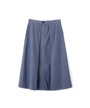 コンパクトヤーンという毛羽の少ない糸を使用した、コットン100%のシャンブレー素材のスカート。高密度に織られたタテヨコ異なる糸による奥行きのある色合いと、製品洗いによって生まれる柔らかな風合いが特長。