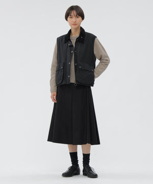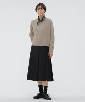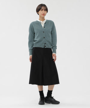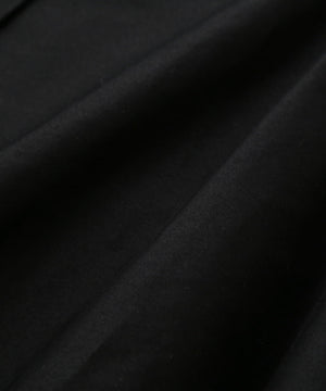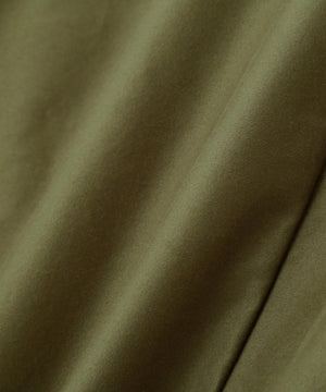光沢を抑えたコットンサテン素材のスカート。経糸と緯糸で糸番手を変えたモールスキンに、ピーチ加工を施してソフトなタッチに仕上げた質感が特長。
