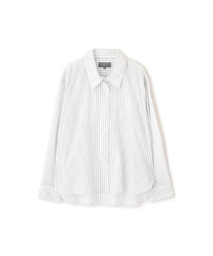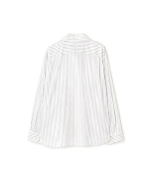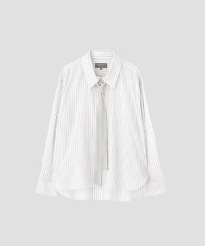 レギュラーフィットのシャツカラーに、同系色の無地シルクで仕立てたナローボータイを添えたスタイル。ミニマルな印象の中に上品なアクセントを加えたデザイン。