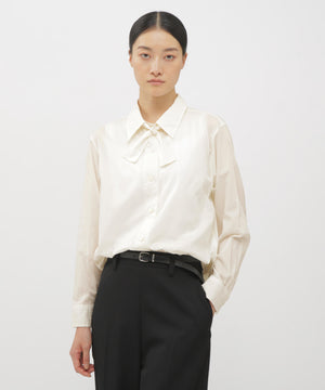 細番手のコットンを甘く織り上げ、製品洗いによってエアリーな風合いに仕上げたポプリン素材のシャツ。密度のある織りと軽さを両立させた、柔らかな肌触りが特長。