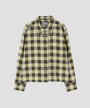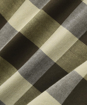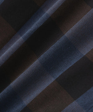 緯糸にコットンカシミヤの混紡糸を使用し、仕上げに起毛加工を施したチェック素材のシャツ。ブロックチェックをツイル組織で織り上げることで、 きれいめな表情を加えたデザイン。