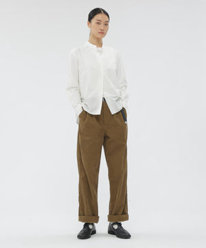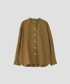 コットンとウールを組み合わせた高密度素材のポプリンシャツ。ウールの膨らみから生まれる柔らかさと、軽く使い込んだようになじみのある風合いが特徴。