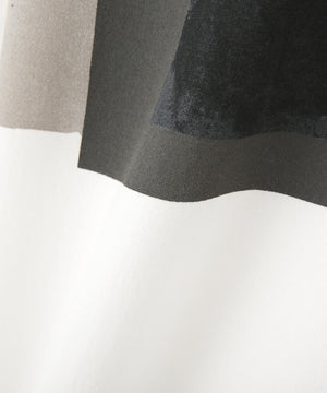 過去に展開したシルクスカーフのデザインをもとにした、異なるモチーフを組み合わせたようなオリジナルプリント。ゆとりのあるシルエットと長めの袖丈が大人の雰囲気を引き立てるデザイン。