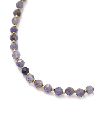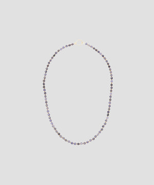 アイオライトとホワイトメタルのビーズを組み合わせた、繊細で上品な印象のネックレス。