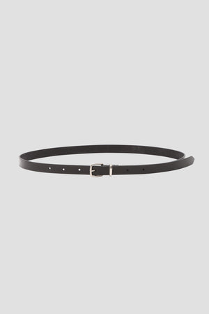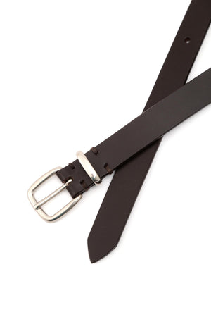 上質なブライドルレザーを使用したベルト。使い込むごとに馴染み、味わいが出てくる素材。アーカイブアイテムをリファレンスし、バックルはあえてきれいに作らず少しゆがみのある型をブラス素材で製作。サル革も金属を用いているのがデザインポイント。
