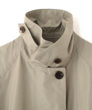 超長綿のエジプト綿ギザコットンとリサイクルナイロンを組み合わせた、コットンナイロンポプリン素材のコート。なめらかな肌触りと耐久性を備え、高密度ならではの軽やかでクリーンな表面感が特長。快適さと環境配慮を両立した仕上がり。
