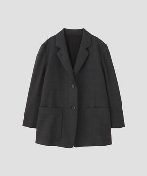 ロング丈でボクシーなシルエットが特徴のブレザーは、素材の軽さが映えるモダンな印象の一着。同素材のトラウザーズとのセットアップもおすすめ。