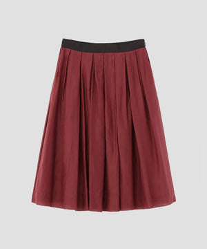 コットンとシルクを組み合わせた、軽やかでシアーな質感が特長の素材のスカート。自然な風合いと美しい発色をあわせ持ち、柔らかな透け感が上質な印象を引き立てる仕上がり。
