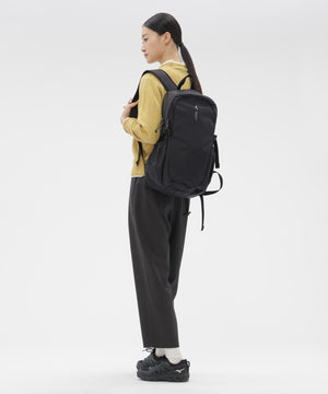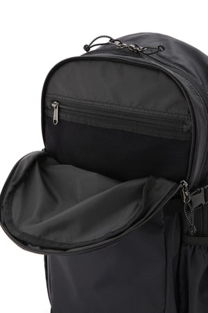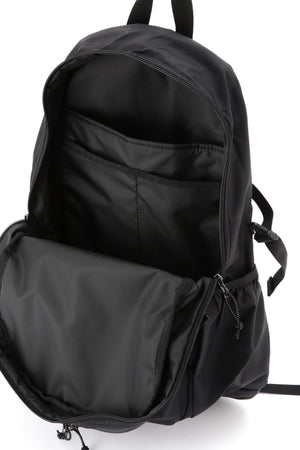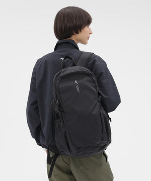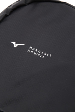 ミズノの高い技術力とマーガレット・ハウエルの感性を融合させたコレクション「MIZUNO FOR MARGARET HOWELL」。PFASフリーの強撥水加工を施したダイヤモンドリップストップを使用。軽量で引き裂きなどに強く、ミズノ独自の合格基準を上回る強度の素材。オリジナルのバッグから容量を約25Lに増やし、角を落としたなだらかなラインに設計。チェストベルトをいかせば、より活動的なシーンでの使用も可能。前ポケットには小物収納に便利なメッシュのインナーポケット、本体内部にはPC収納ポケットが付いた利便性の高いバックパック。