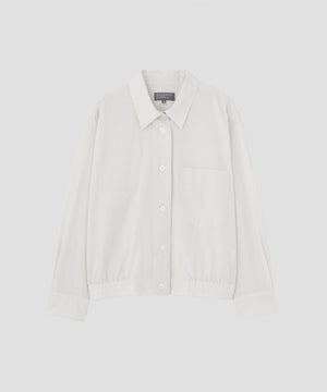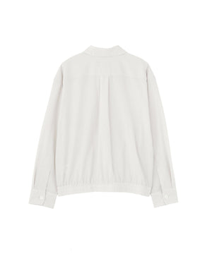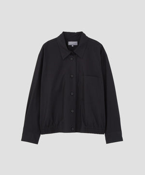 裾にゴムを通したブルゾン風のシルエットで、羽根襟や胸ポケット、カフス、剣ボロなどシャツのディテールを取り入れ、シャツ感覚で羽織れるバランスに仕上げたデザイン。コットンナイロン素材ならではの軽さをいかした一枚。