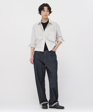 コットンとナイロンを組み合わせた、高密度で軽やかなポプリン素材のシャツ。クリーンな表面感とほどよいハリを備え、カジュアルになりすぎない上品な風合いが特徴。肌触りもやさしく、さらっと着用しやすい素材感。