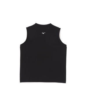 ノースリーブのシンプルなリラックスフィット。袖口布の幅を抑え、すっきりとした見え方にまとめたデザイン。MIZUNOのスポーティーなアイテムはもちろん、テーラードジャケットなどとも合わせやすい一枚。
