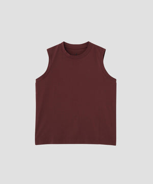 コットンタッチで落ち感のある、高密度ピケジャージー素材のスリーブレスTシャツ。しっかりとした素材感を保ちながら、肌離れが良く、暑い日にも涼しく着用できる仕上がり。速乾性を備え、夏場の繰り返しの洗濯でも乾きやすい特性。