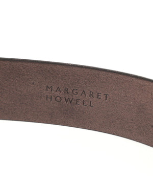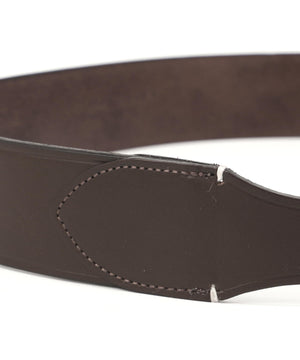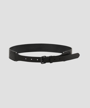 センターは細く、本体はやや幅を持たせたオーバーベルト仕様。マットなブラック仕上げのバックルが全体を引き締めるアクセント。ドレスや薄手のコートに合わせたスタイリングはもちろん、通常のベルトとしても取り入れやすいアイテム。