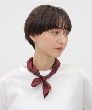 上質なシルクツイルを使用した、滑らかで上品な光沢を持つバンダナ。繊細なツイル組織ならではのしなやかなドレープが特徴。