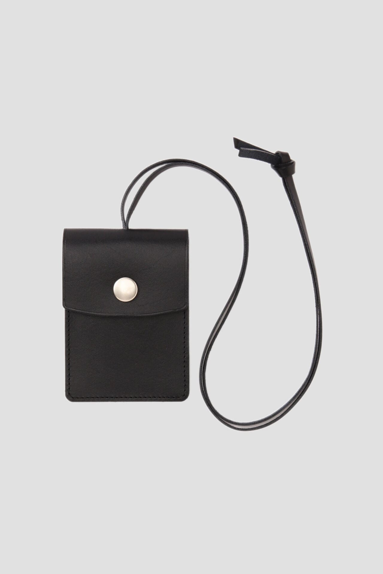 表面がなめらかでしわの少ないスムースレザーを使用したポーチ。使い込むほどに革の味わいや馴染みが増し、経年変化を楽しめるアイテム。カードなどが入れられる仕切りとマチで収納力を高め、内側にはキーリングが付いたデザイン。首から掛けかけられるストラップ付き。