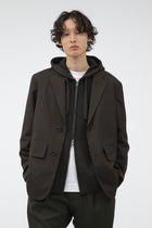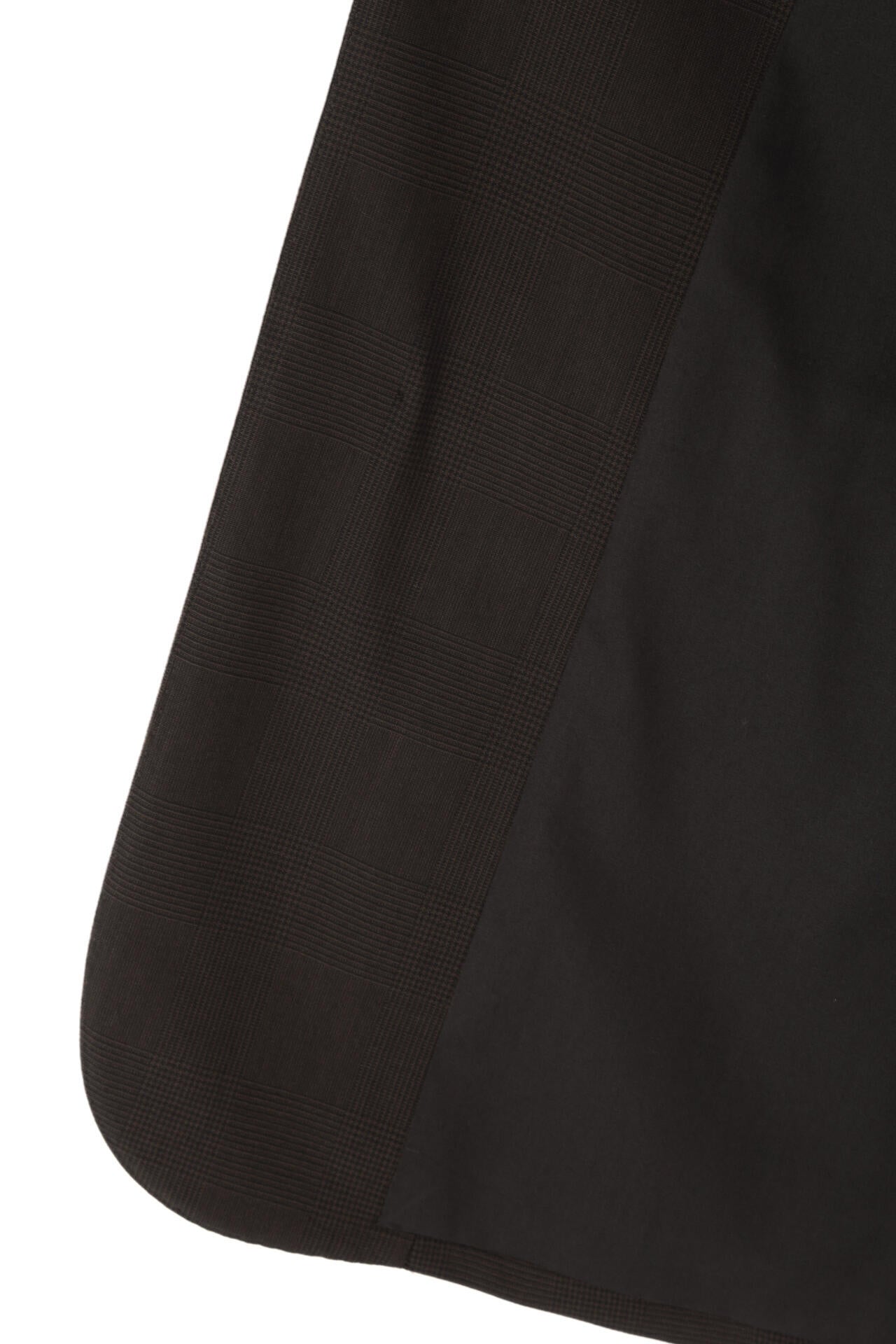 細番手のウールを使用し、大柄のグレンチェックパターンで仕立てたジャケット。軽量な仕上がりで、腰フラップとウェルトポケットを組み合わせたモダンなデザインが特徴。カーキとブラックの配色がコーディネートのアクセントになる一着。