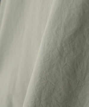 コットンポプリン素材の裏面にアクリルコーティングを施したシャツブルゾン。パリッとした風合いと軽量でハリのある質感が特徴。
