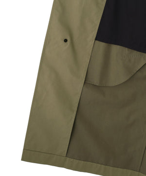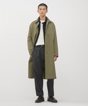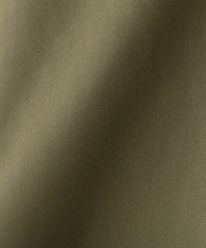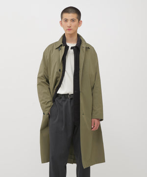 GIZAコットンとリサイクルポリエステル、シルクを組み合わせた、滑らかで軽やかなギャバジン素材のコート。それぞれの素材が持つしなやかさや耐久性を活かし、深みのあるカーキの色合いに仕上げた一枚。