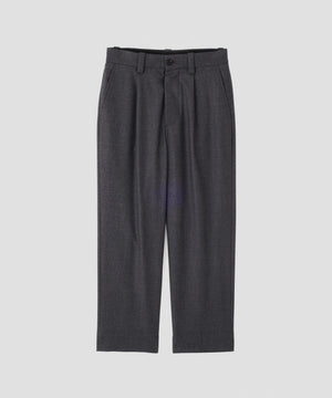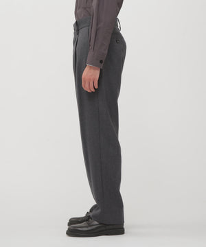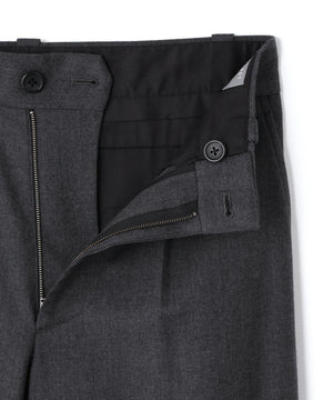 すっきりとしたテーパードラインに、シングルプリーツを加えたドレス仕様のデザイン。同素材のジャケットと合わせたセットアップスタイルのほか、幅広い着こなしに対応する一本。
