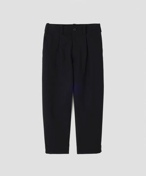 裾にタブアジャストを配したワイドストレートシルエット。クロップド丈で同素材のブルゾンとのセットアップはもちろん 、様々な着こなしに馴染む一本。
