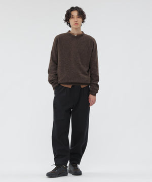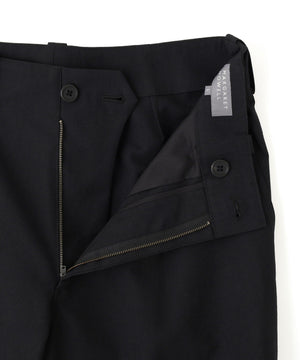 イタリアのサプライヤーで織り上げたドライウールのトラウザーズ。高密度でハリのある表情が特長で、原毛にはノンミュールジングウールを使用。テーラリングに映える上質な生地感。