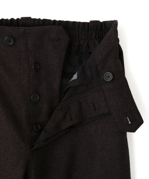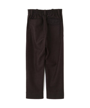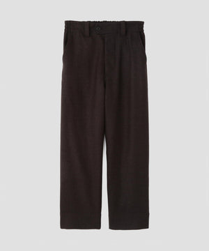 膨らみがあり、柔らかな手触りのウールフランネルを使用したトラウザーズ。糸の段階で染めた深みのある色合いと、綾目が立った表情が魅力。スコットランドのLOVAT社で織り上げられた上質なファブリックを使った一着。