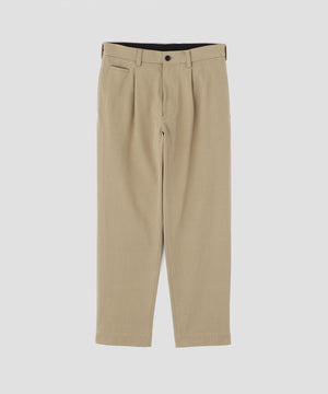 自然なムラ感を持つコットンツイルを使用した、表情のある素材のトラウザーズ。