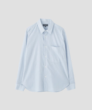 コットンにシルクをブレンドした、繊細で滑らかな風合いのストライプ素材のシャツ。ブルーとホワイトの爽やかな配色が、清潔感のある印象を添えるデザイン。