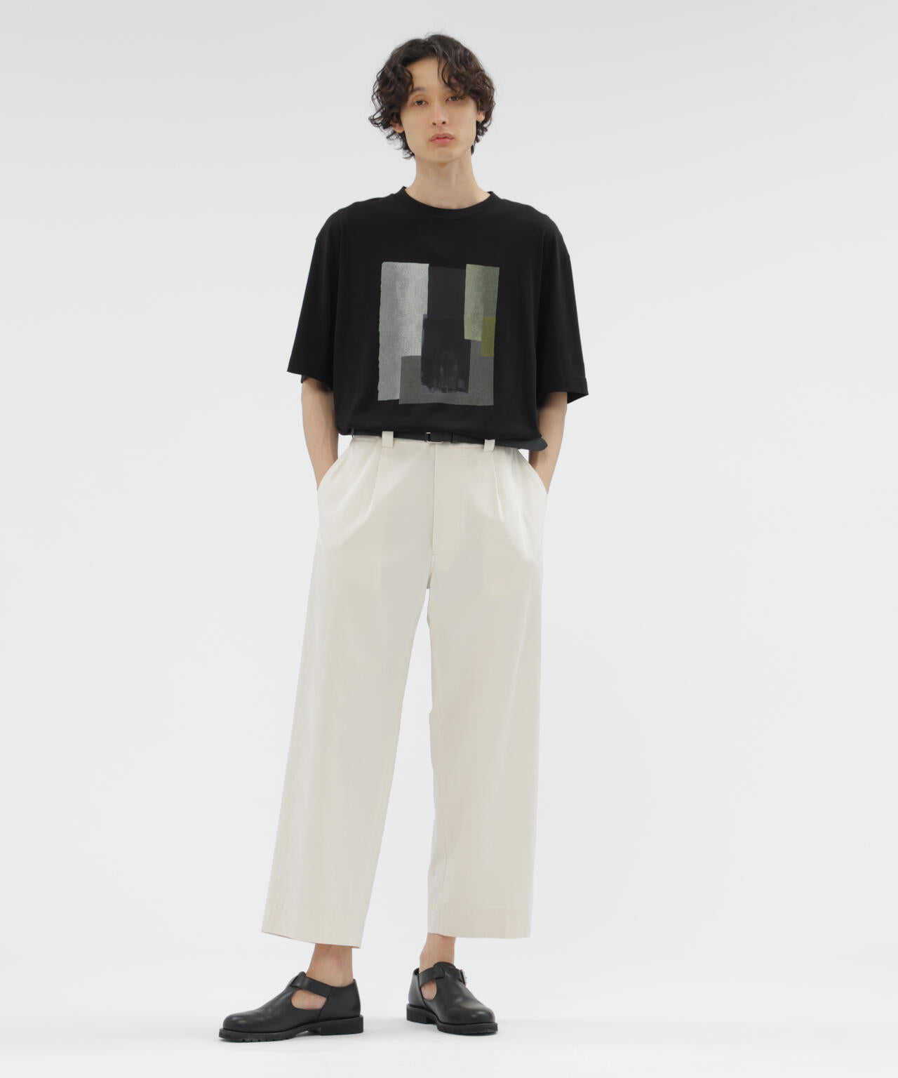 オーガニックコットンを使用した、肌離れがよく程よいハリのあるコットンジャージー。細番手の糸で丁寧に編み立てた生地は、ホワイトでも透けにくい安心感のある仕上がり。