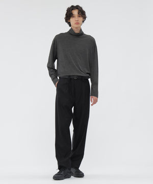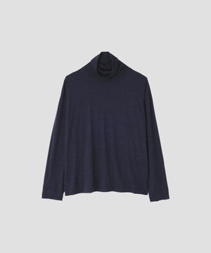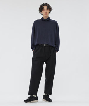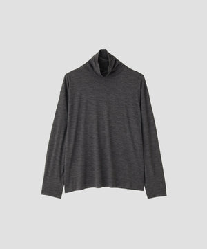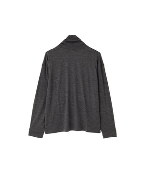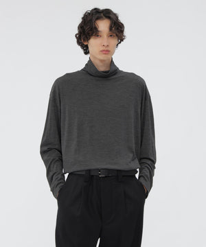 スーパー120’sのメリノウールを使用したタートルネックジャージー。ハイゲージで編み上げた細かな編み地に、ミルド仕上げによる微起毛を加え、ふくらみのある仕上がり。