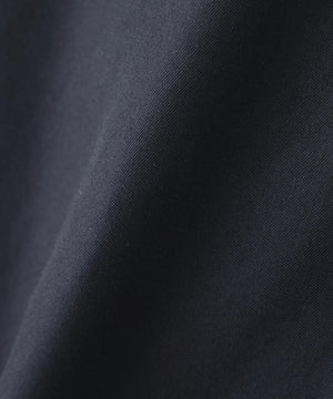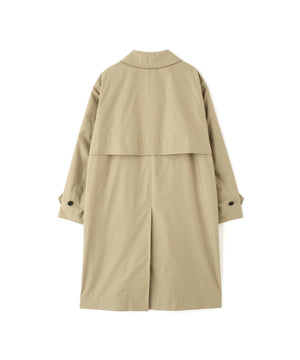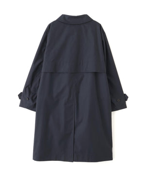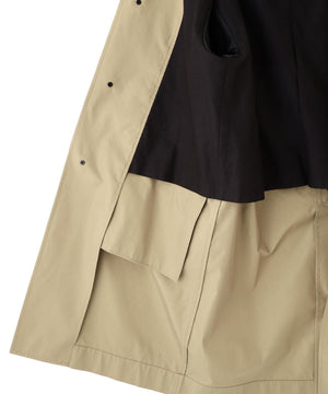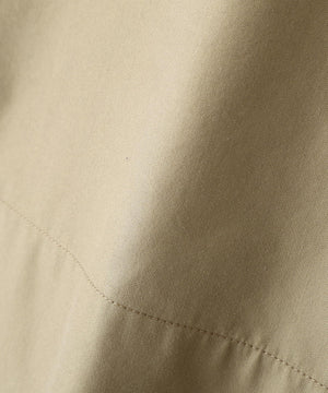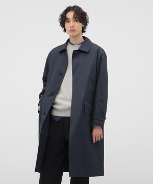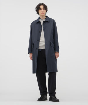 コットンとナイロンを組み合わせた、軽さと耐久性を備えたギャバジン素材のコート。自然な光沢を抑えた落ち着いた表情で、しなやかさとほどよい張りをもつ風合い。