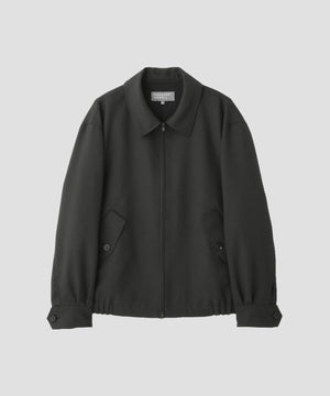 イタリアンウールを用いた、ドライな風合いのブルゾン。強撚糸ならではの反発力と、キャンバスのような凹凸を備えた平織素材。柔らかさを残しつつ、肌離れのよい質感が特長。