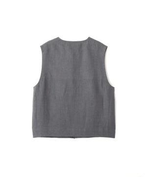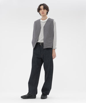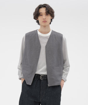 ヴィンテージのウエストコートを基にアレンジしたジップスルー仕様。フロントはYKK製(EXCELLA®)のダブルジップを採用し、ロゴを省いたシンプルなスライダー。素材の表情を引き立てる、抑制の効いたディテール。同素材のトラウザーズとのセットアップもおすすめ。