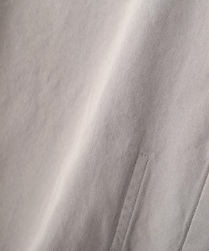 コットンとシルクを組み合わせた、しなやかなドレープと上品な光沢を備えた平織素材のブルゾン。経糸の比率を高めることで、落ち着きのある表情ときれいな落ち感を引き出した仕上がり。軽やかさの中に端正さを備え、春夏シーズンに取り入れやすい素材感。
