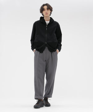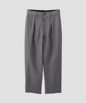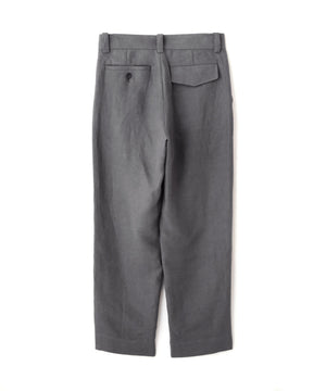 シングルプリーツを配した、ベーシックなテーパードシルエット。前開きはファスナー仕様で、スタイリングを選ばないバランス。 同素材のアイテムとのセットアップもおすすめ。