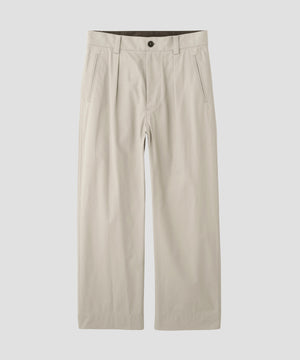 フロントにシングルプリーツを配し、斜めに切り込んだジェットポケットがさりげないアクセント。すっきりとしたシルエットで、軽やかな印象に仕上げた一本。