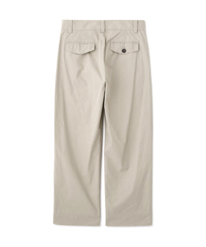 希少性の高いエジプト綿を用いた、しなやかで上質なギャバジン素材のトラウザーズ。毛羽を抑えた強度のある糸を高密度に織り上げ、揉み込みによる仕上げで、ほどよく履き込んだような柔らかな風合いが特長。