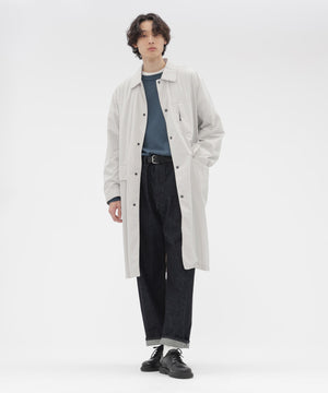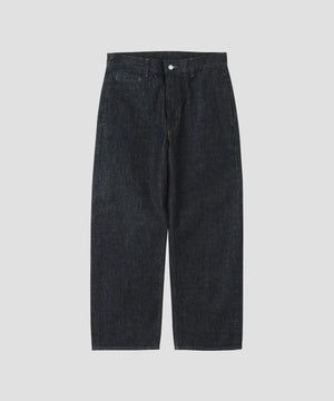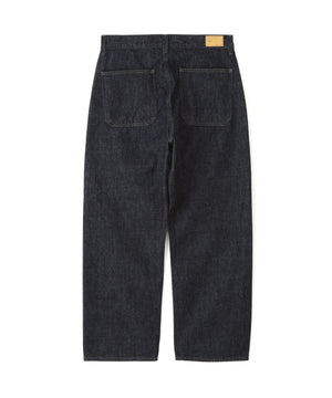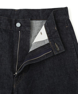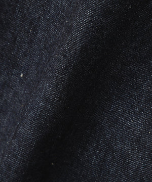 ヨークを省いたミニマルなデザインに、ワイドストレートのシルエット。フロントにはコンパクトなジェットポケット、バックにはジャケットと共通したパッチポケットを配し、脇のセルビッチ幅をあえて太く取った仕様。 同素材のブルゾンとのセットアップもおすすめ。