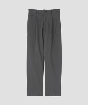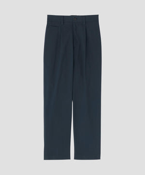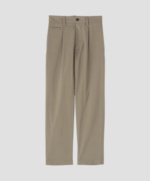 コットンとシルクを交互に織り込んだ、マットな質感のポプリン素材のトラウザーズ。しなやかさを残しつつ、控えめな光沢による落ち着いた表情が特徴。