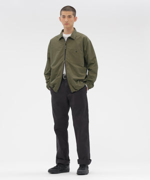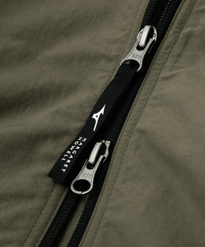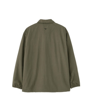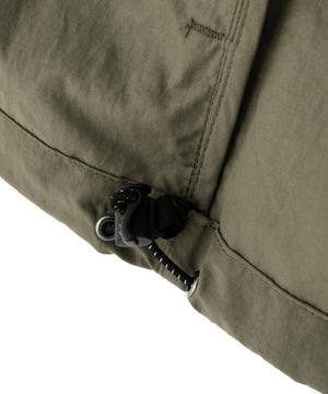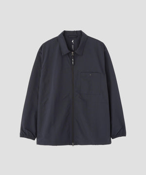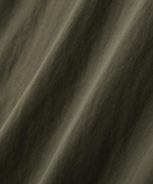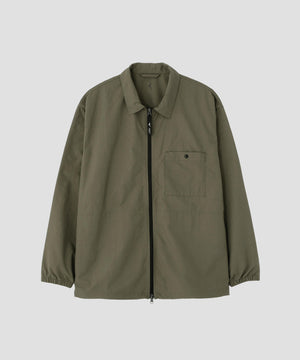 タスランナイロンを用いた、マットな質感でコットンのような風合いが特徴のシャツ。Tシャツの上にアウター感覚で羽織れるボクシーシルエット。フロントには逆開仕様のファスナーを使用し、下側のスファスナーを開けたり、裾のスピンドルを絞って動きをもたせたスタイリングが可能な一着。