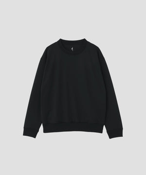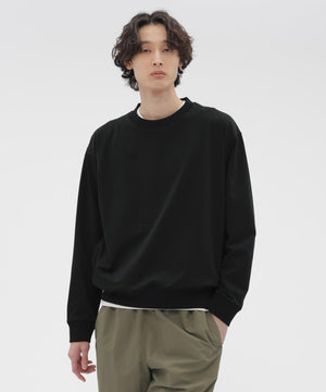 目の詰まった編み地でありながら伸縮性を保ち、UVカット(UPF50+)機能を備えた、複合繊維ポリエステル素材のジャージー。ドロップショルダーのボクシーシルエットが生む、シンプルでデイリーに取り入れやすい一枚。