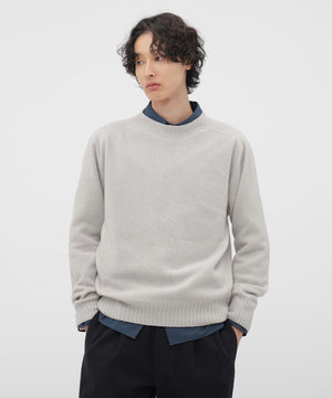 イタリア紡績のメリノウールを使用した、温かみのある風合いのニット。中肉厚の7ゲージが生むほどよい暖かさと、メリノならではのしなやかなタッチを備えた素材感。