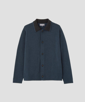 エクストラファインメリノを使用した、繊細な風合いの12ゲージ天竺編みのカーディガン。軽やかな肌触りと滑らかな表情を持つ素材感。