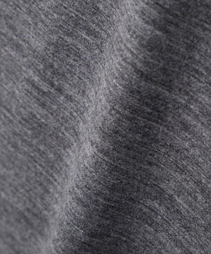 スーパー120’sのメリノウールを用いたタートルネックジャージー。ハイゲージで編み上げたきめ細かな編み地に、ミルド仕上げによる微起毛を施し、ふくらみのある表情に。ボディはトップ染めによるメランジカラー、襟のフライスにはソリッドなブラックを配し、コントラストの効いたスポーティーな印象。